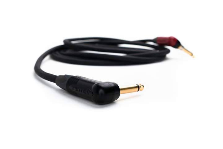 Hand-soldered in-house, low-capacitance cable with pro connectors. Heat-shrunk, strain-relieved, and meter-tested for continuity/capacitance. Built for quite long chains, available in custom lengths and low-profile plugs - guaranteed not to "such" your tone!